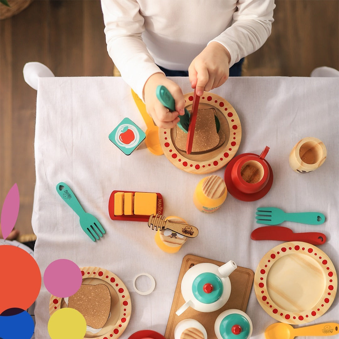 Os brinquedos de madeira são feitos para resistir a todas as aventuras culinárias, além de ser uma escolha amiga do ambiente, ajudando a reduzir o uso de plásticos.
